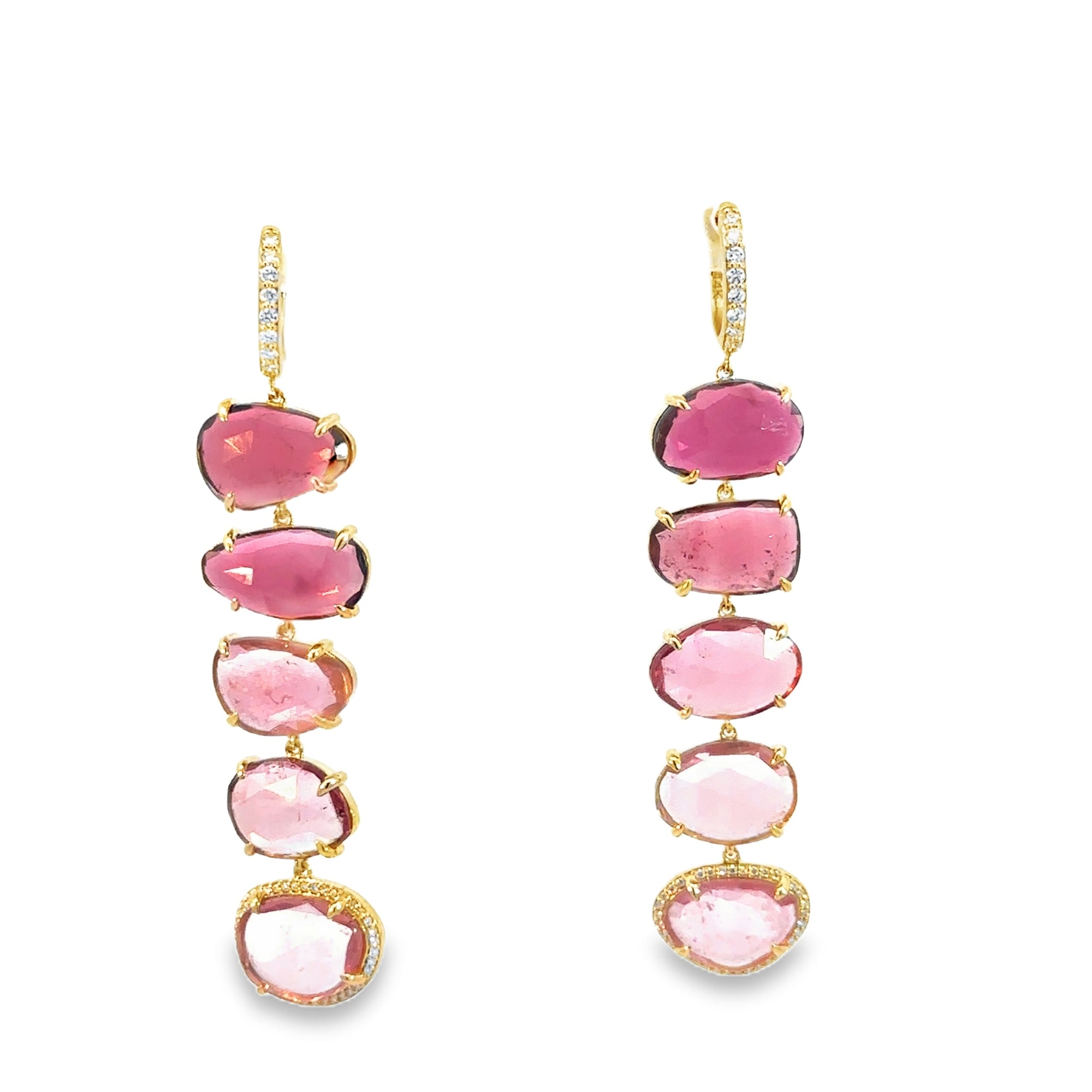Tourmaline and Diamond Shield Cut Earrings