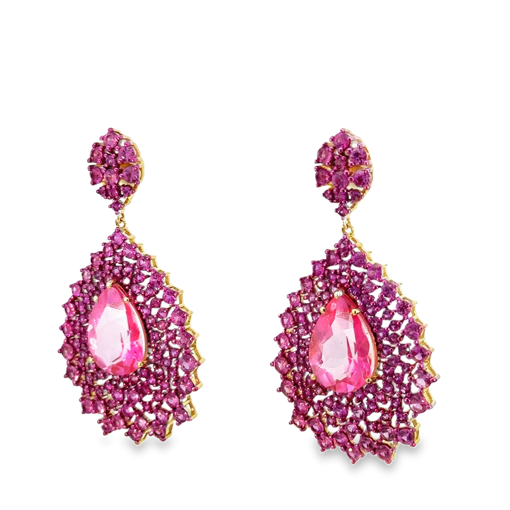 Ruby and Rose Quartz Flower Petal Stud Earrings