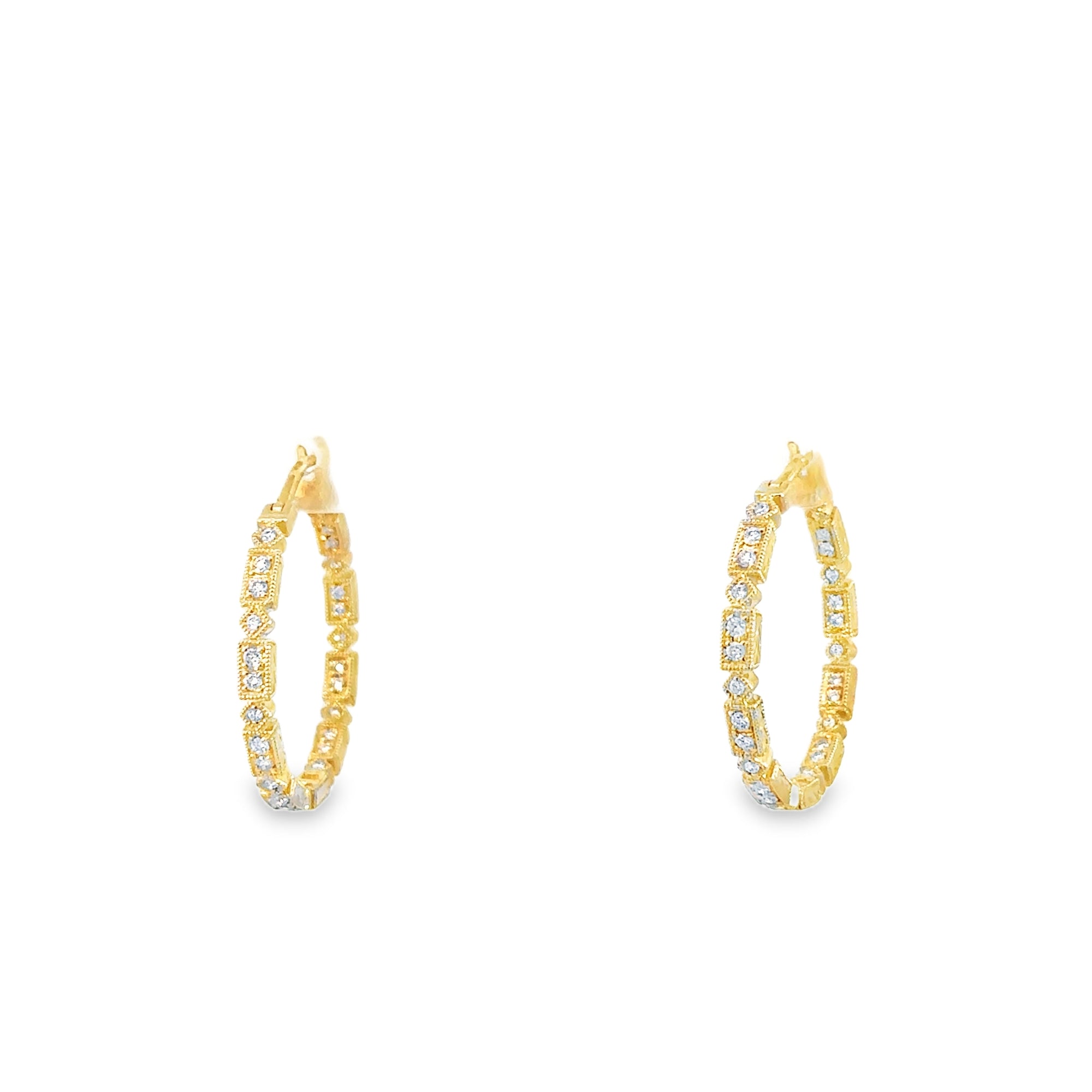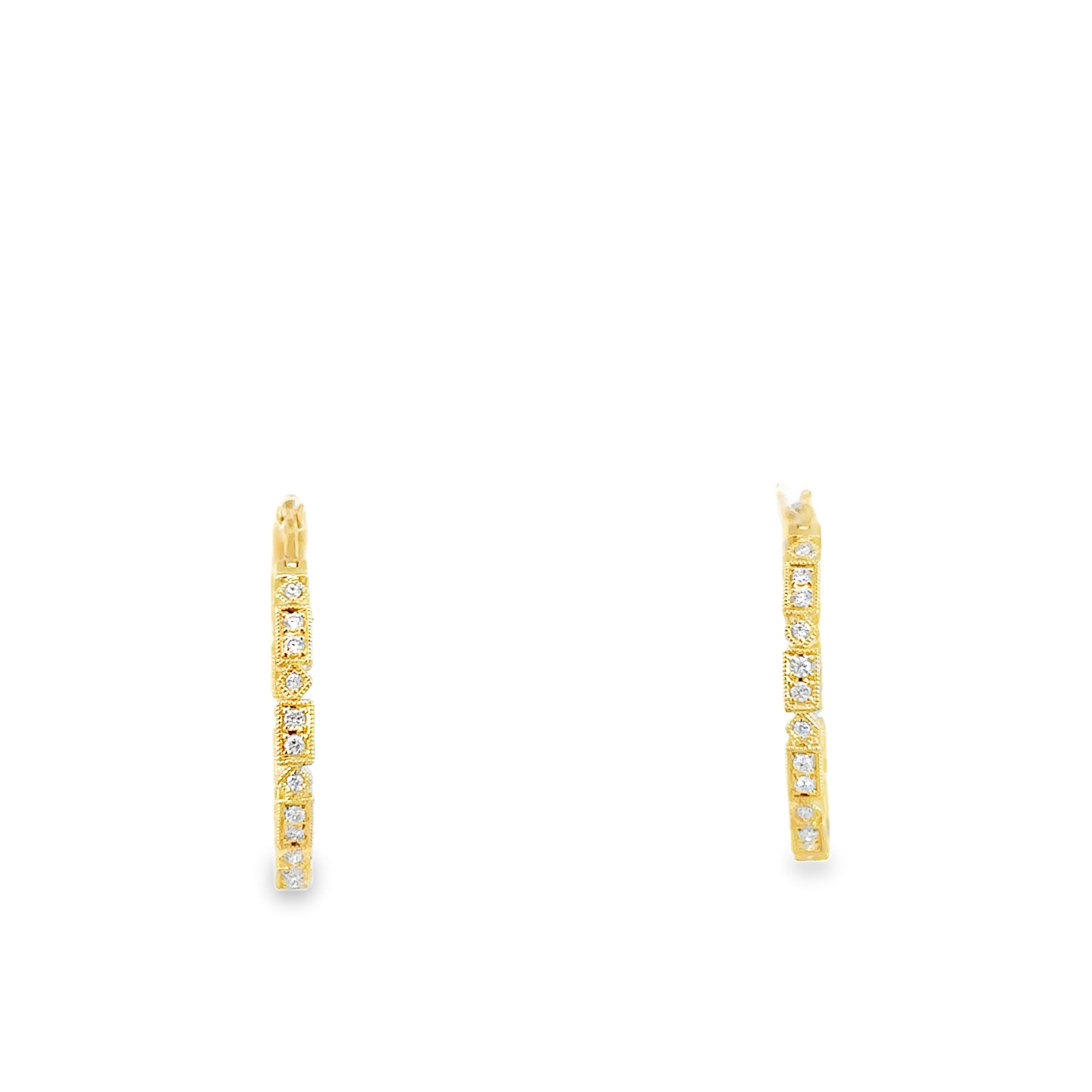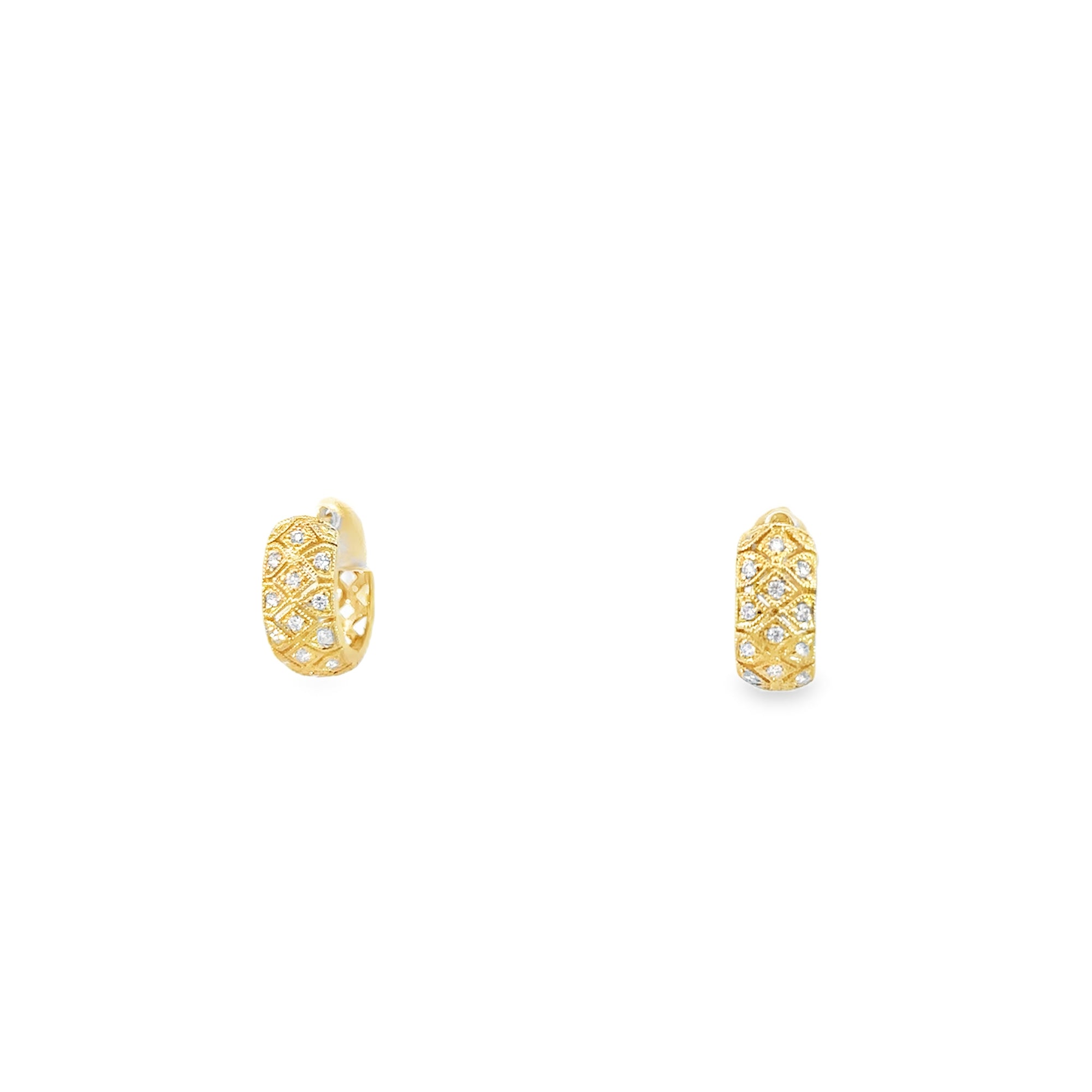 Large Pavé Diamond and 14k Yellow Gold Huggie Hoop Earrings