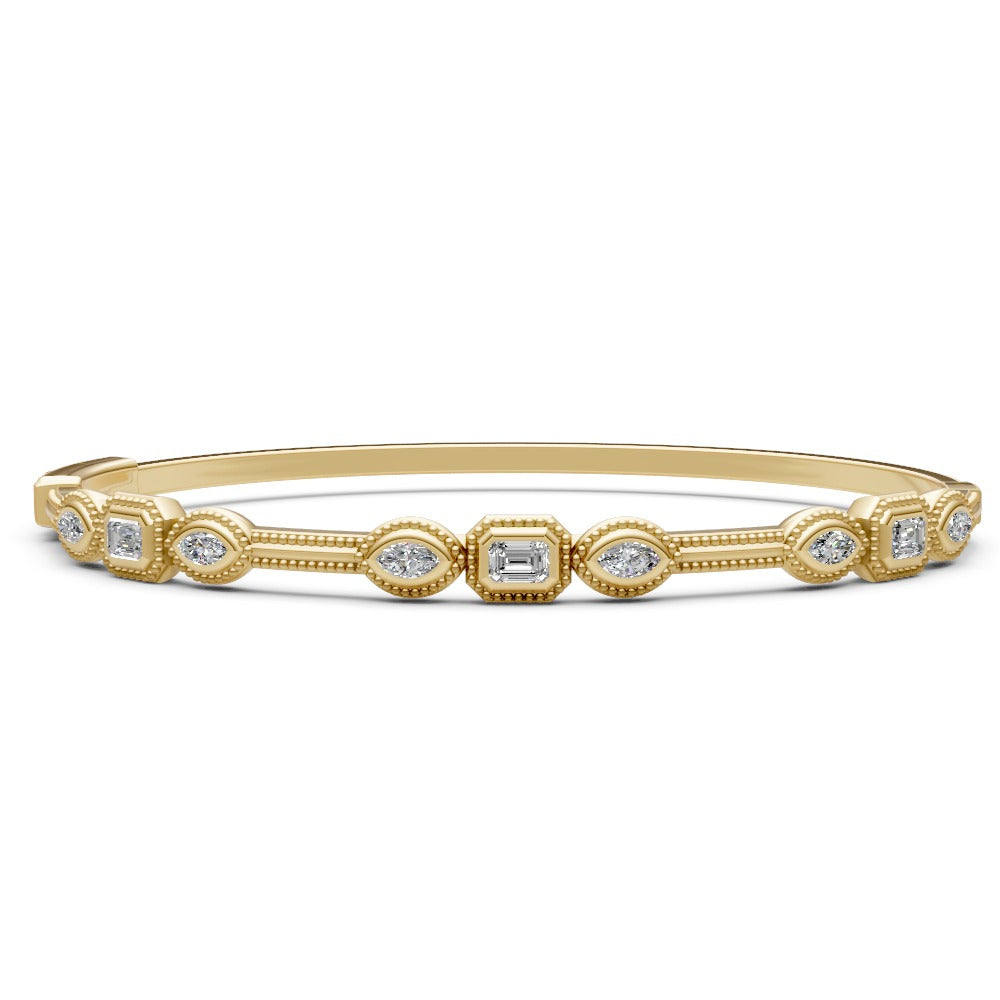 Pear and Emerald cut Diamond Milgrain Bangle Bracelet