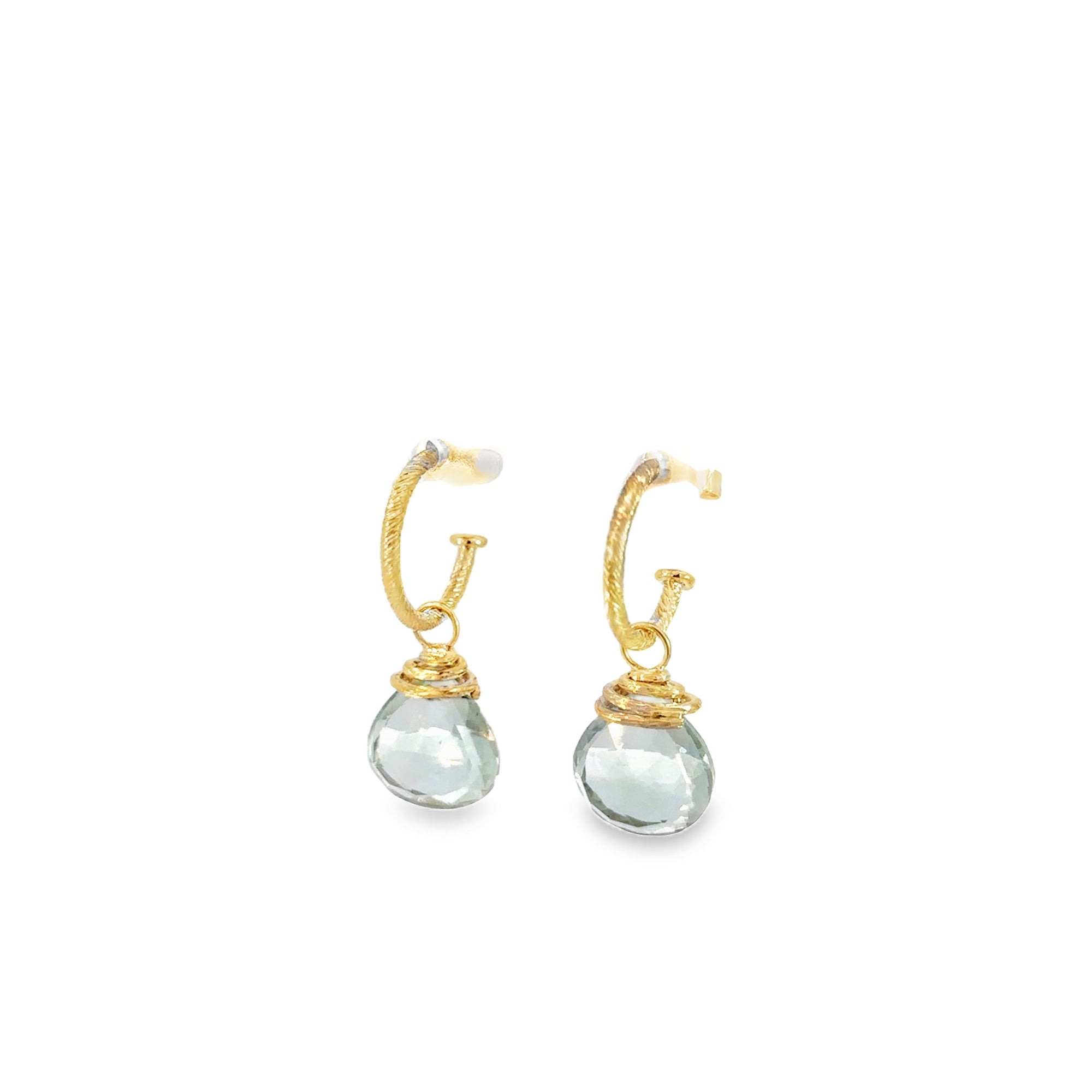 Green Amethyst Spiral Briolette Cap Fois Bois Earring Charms